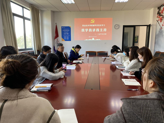 学习百年党史,烛照奋斗征程,今年是中国共产党建党一百周年,职业技术学院辅导员为庆祝建党100周年,组织开展党史学习系列活动之我学我讲我主持。本次主题为《七千人大会》,由院党委组织委员马冯莉老师主持,院党委书记王加宁、副书记潘明芸以及全体辅导员出席此次活动。传承红色基因,学好党史是重要的一环。马冯莉老师用毛主席诗词——《卜算子·咏梅》开始此次党史学习活动,详细讲解了《七千人大会》召开的时代背景、大会内容、会后国家新气象;着重强调了报告稿直接印发大会,以组(省)为单位讨论3天,先听取意见,然后再正式作报告的特殊组织方式;高度弘扬了大会的延伸“出气会”,突现了民主、坚持民主集中制的重要性。结合本职工作,马冯莉老师表示《七千人大会》作为一场规模浩大、开在国家建设初期的变局会议,打开了国家发展的新思路,体现的正是兴国、强国的中国精神,作为新时代的党员教师,继承发扬中国精神是我们义不容辞的责任。在日常教育工作中,应不忘立德树人初心,牢记为党育人、为国育才使命,积极探索新时代教育教学方法,不断提升教书育人本领;严格落实师德师风要求,加强课程思政的能力。活动在热议中迎来尾声,党委书记王加宁对《七千人大
