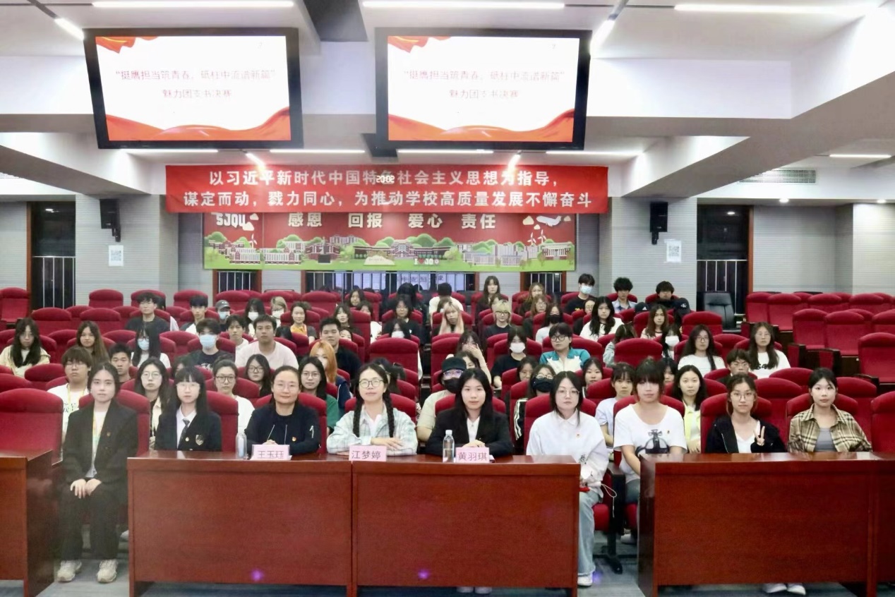 为深入学习贯彻党的二十大精神,大力弘扬社会主义核心价值观,让我院学生进一步学习和深刻领悟习近平新时代中国特色社会主义思想丰富内涵,提高团支书的实践能力和执行力,6月11日晚,艺术设计学院在珠宝学院报告厅举办“魅力团支书”活动决赛。艺术设计学院分团委书记王玉珏老师、分团委学生会指导老师江梦婷老师,以及主席团成员、各部门部长出席本次活动。艺术设计学院“魅力团支书”活动分初赛、复赛和决赛三场。初赛是由2023级各团支部以视频形式展示各团支部凝聚青年奋进新征程的风采和团支书的工作亮点;复赛围绕“探历史”和“学新知”两方面进行知识竞赛;决赛由各团支书以“挺膺担当筑青春,砥柱中流谱新篇”为主题进行5分钟演讲。经过三轮激烈的角逐,数字媒体艺术B23-3,视觉传达设计B23-3、视觉传达设计B23-5获得“知识魅力团支部”称号,视觉传达设计B23-2的张静怡和视觉传达设计B23-5的范婧怡荣获“最佳魅力团支书“称号。艺术设计学院分团委书记王玉珏老师指出,团支部是广大团员青年最直接、最广泛联系的基层组织,要紧跟时代步伐,创新开展好团支部的各项工作,培养随机应变、语言表达、逻辑思维的能力,进一步增强班级团