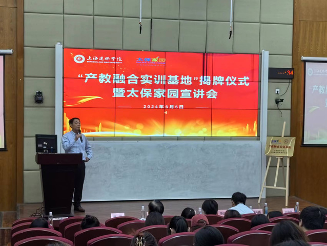 1111MicrosoftInternetExplorer402DocumentNotSpecified7.8 磅Normal0为了应对日益严峻的人口老龄化挑战,培养社会需要的更高层次养老服务管理人才,健康管理学院养老服务管理系不断寻求人才培养的新模式。2024年6月5日,健康管理学院与太保家园产教融合实训基地揭牌仪式在上海建桥学院举行。太保家园普陀国际康养社区总经理龚苗女士与健康管理学院院长王志雄共同为实训基地揭牌并讲话。太保家园普陀国际康养社区人事经理王佳敏先生、健康管理学院党总支书记胡兆燕、院长助理兼养老服务管理系副主任刘晓培以及养老服务管理系全体教师和部分学生们共同参加并见证了此次揭牌仪式。揭牌仪式由健康管理学院党总支书记胡兆燕主持。“莫道桑榆晚,为霞尚满天”。6月5日14:30分,揭牌仪式在健康管理学院党总支书记胡兆燕热情洋溢的主持词中拉开了帷幕。太保家园普陀国际康养社区总经理龚苗女士和健康管理学院院长王志雄共同为实训基地揭牌将仪式推向了高潮。随后,太保家园普陀国际康养社区总经理龚苗女士从太保家园普陀国际康养社区的建设背景、定位、管理团队、规模等方面做了全面的介绍。她指出太保