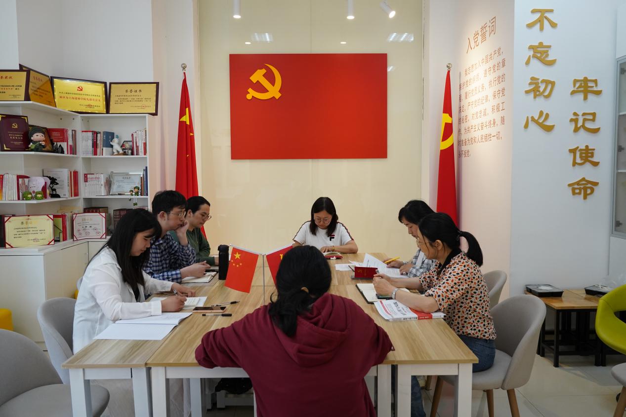 为促进基层党建工作的深入交流与互相学习,5月30日上午,上海建桥学院外国语学院党委书记杜鹃带领院党委副书记伊莉、院党委组织委员刘沛雨、院党委宣传委员朱心怡、院各支部书记一行人赴上海杉达学院胜祥商学院总支部开展基层党建示范创建和质量创优交流研讨会。上海杉达学院胜祥商学院党总支书记隆烨、党总支副书记韩斌全、党总支教工第二党支书记兼副院长陈淑贤、组织委员代表与支部书记代表参加了此次交流研讨会。研讨会由上海杉达学院胜祥商学院党总支副书记韩斌全主持。会议伊始,上海杉达学院胜祥商学院党总支书记隆烨对我院党委一行到访表示热烈欢迎,并介绍了学院的办学模式、专业设置与学科建设情况以及党员活动室建设情况。隆书记指出,学院党员活动室作为第二批上海民办高校示范性党员活动室,立足于空间合理利用、完善基础设置、鲜明化党建标识、规划化制度和质量化服务,旨在筑牢党建工作主阵地,推动基层党建工作落实落细,强化党建引领作用,促进党建与事业发展紧密融合。杜鹃书记对贵院的热情接待表示由衷感谢,并介绍了外国语学院党建工作的基本情况。她表示,前期学院党建工作过程中存在党委体制机制不够健全、党员示范性不够、党委的引领性辐射性不够、