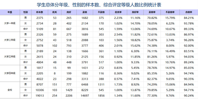 2024-2025学年上海建桥学院学生体质健康测试情况