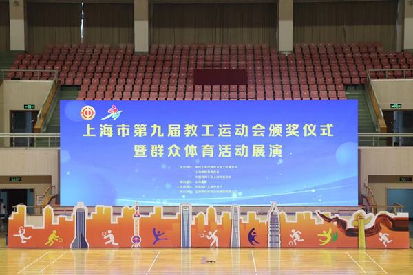 6月18日,由上海市教卫工作党委、上海市教委、上海市教育工会主办、上海大学承办的上海市第九届教工运动会颁奖仪式暨群众体育活动展演在上海大学宝山校区隆重举行。本次活动得到了各级领导的高度重视,上海市人大常委会副主任、党组副书记,市总工会主席郑钢淼,中国教科文卫体工会副主席、一级巡视员高洁,上海市教卫工作党委书记沈炜,上海大学党委书记成旦红,上海市总工会副主席丁巍,上海市教卫工作党委副书记、市教育工会主席张艳萍等领导出席活动。我校党委副书记、工会主席夏雨、副主席潘秀玲带队,校职工广播操队、九运会体育达人和部分职工代表参加了活动。(校党委副书记、工会主席夏雨)九运会于2021年启动,共设18个大项、243个小项,历时近三年圆满完成了所有比赛项目。我校教职工参与了高校B组比赛项目,在教工乒乓球、气排球、广播操、田径比赛、趣味运动等项目中获得了优异成绩,充分展示出建桥教职工拼搏进取的精神和追求卓越的风貌,我校工会荣获上海市教工九运会优秀组织奖。九运会期间,我校还涌现出了多名校园健身运动的引领者和“体育达人”,以“积极锻炼、强健体魄”的理念,带领全校教职工积极投身各项体育活动。我校窦红霞老师、居麦