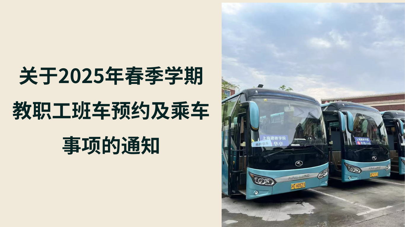 各位教师、职工:为了充分利用班车资源,实现教师班车乘坐率最优化,本学期教职工班车从2月20日开始运行,各项乘车事项须知及新版班车预约系统注意如下:1.班车预约入口调整:需绑定“建桥小星”公众号,点击下方 菜单栏中的“建桥小星”,点击“应用-班车预约”。2.预约班车离校需要提前2小时进行,进校需要在前一天17:00 以前进行预约,如未预约将限制乘车。3.班车刷卡设备采用微信扫码,教职工在保证手机网络畅通(4g/5g/wifi)的情况下,使用微信扫一扫,扫描班车设备上的二维码显示成功即可完成打卡,同等作为校内考勤打卡及乘车扣费凭证,月底结算。4.班车采取预约制,一旦预约人数超过班车座位数,用户将无法预约,请务必提前预约。为保障乘车安全及了解乘坐情况,教职工在乘车时需有序扫码,扫码打卡后方可上车。不得跨班次、跨日期乘车。乘车期间请全程佩戴安全带。5.校园班车实行实名制预约管理,不得代替他人预约,乘坐班车请务必扫码乘车,工作人员将监督扫码乘车情况,如未预约或未打卡者将限制乘车,各线路驾驶员将核实预约打卡情况后方可上车。后勤保卫处2025年2月28日附件:教职工通勤班车时刻表线路1.华亭方向:进