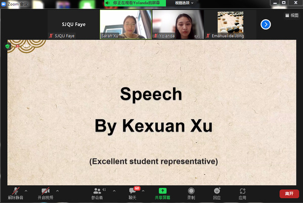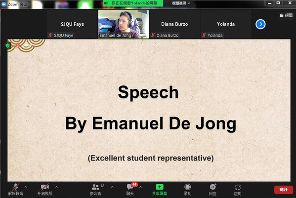 9月17日,上海建桥学院“国际学生暑期中国围棋班”结业典礼于线上通过Zoom平台连线围棋班全体学员同步进行。对外交流办公室主任梁月泉、围棋系主任孙德常、对外交流办公室相关负责人参加结业典礼,围棋班授课教师及助理教练员应邀出席。