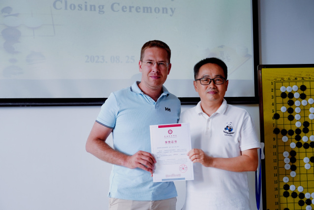 最后,围棋班总教练孙德常教授致辞向围棋班教学团队和全体学员表示感谢。孙教授在与学员们的朝夕相处中,感受到大家对围棋的强烈热爱,并建立了深厚的友谊。同时,他也十分欣慰,不少年轻学员展现了可发展为职业棋手的潜力。他希望众人不忘初心,持之以恒,为围棋在全球的传播推广做出更大贡献。