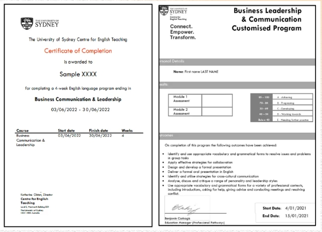 参加悉尼大学项目的学生将由悉尼大学进行统一的学术管理与学术考核,顺利完成项目的同学可获得悉尼大学的项目证书和成绩单。