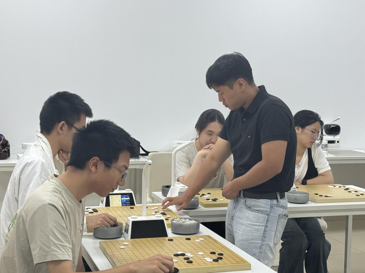 入学仅一周,他便积极参与多项校园围棋文化活动:在建桥新建的围棋智能工作室中,他主动加入“一对四指导棋”活动,耐心为同学们分析棋局、分享经验;在由职业八段棋手方天丰主讲的围棋讲座中,他踊跃发言,介绍韩国围棋战术特色,其清晰的逻辑与积极的态度赢得现场师生的广泛好评。