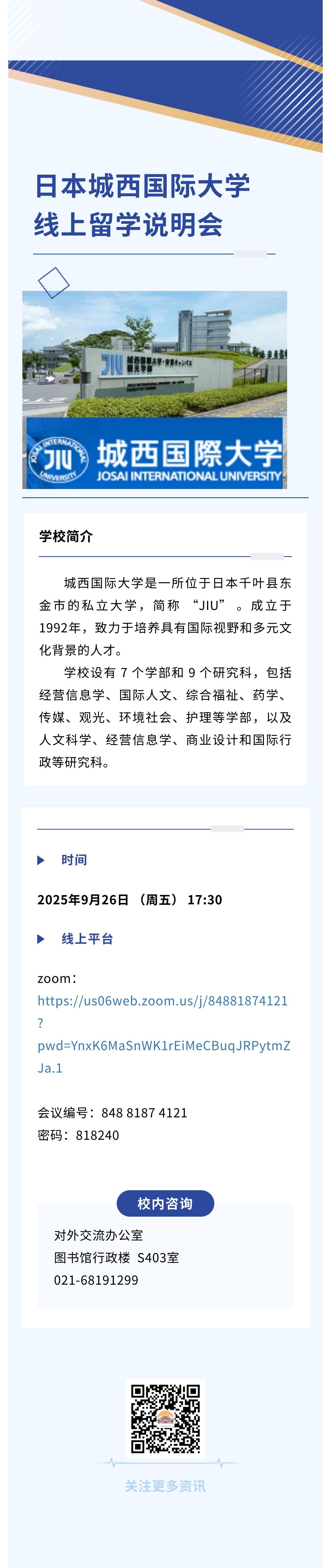 宣讲会预告 | 日本城西国际大学线上留学说明会