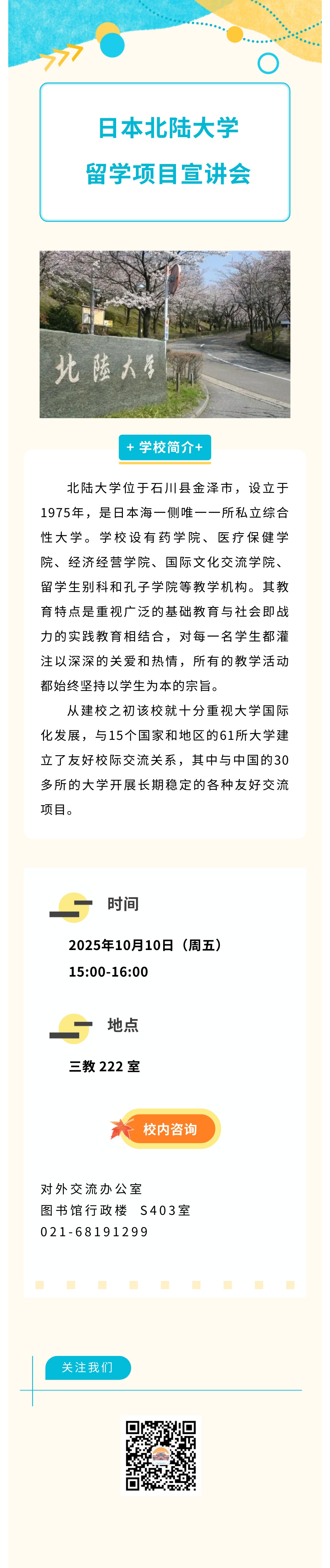 宣讲会预告 | 日本北陆大学留学项目宣讲会