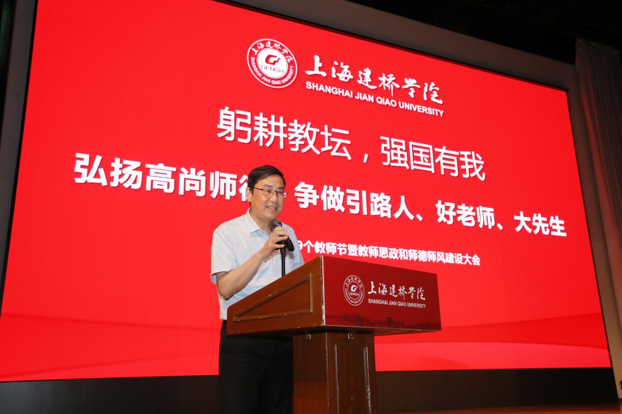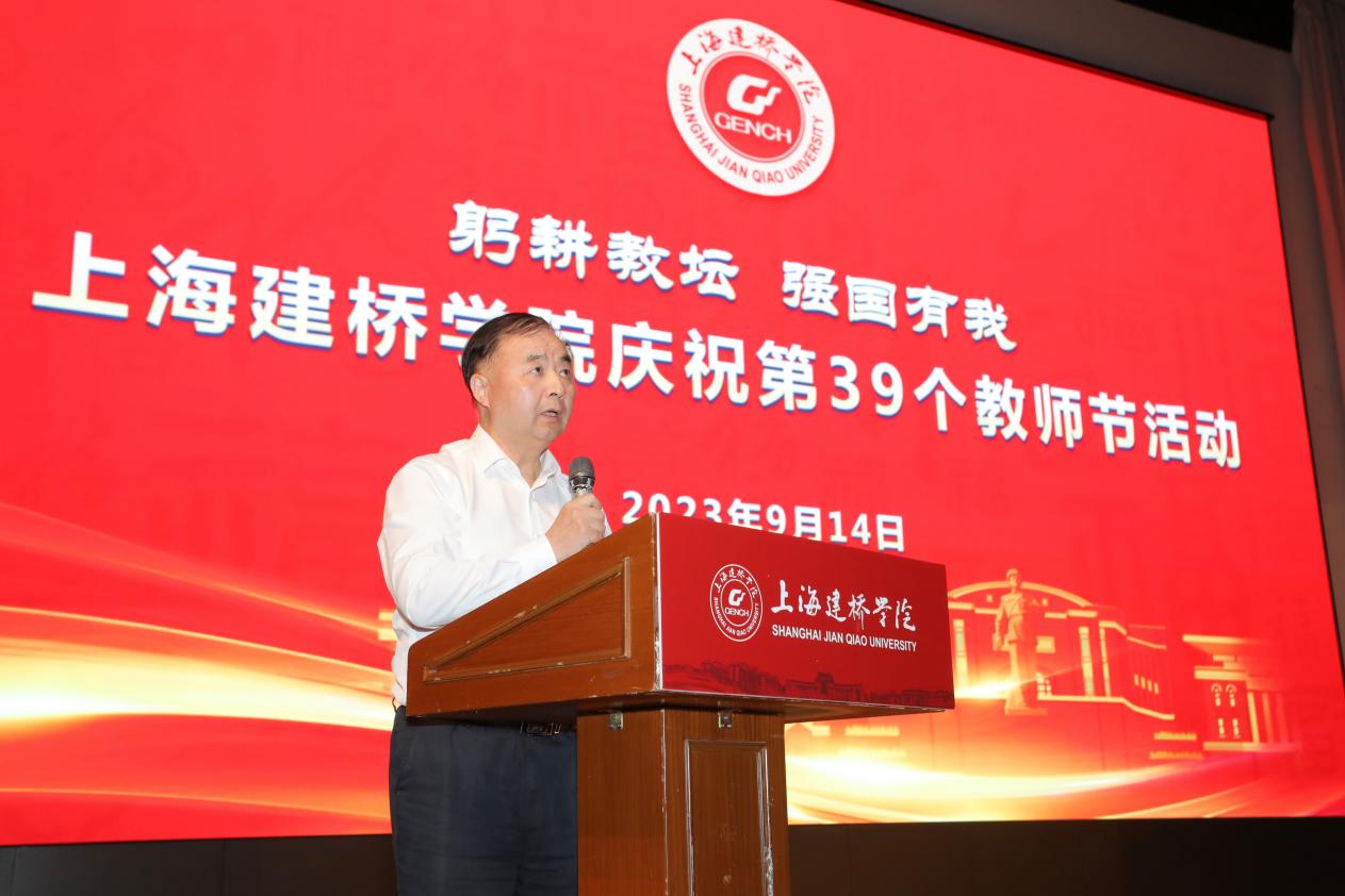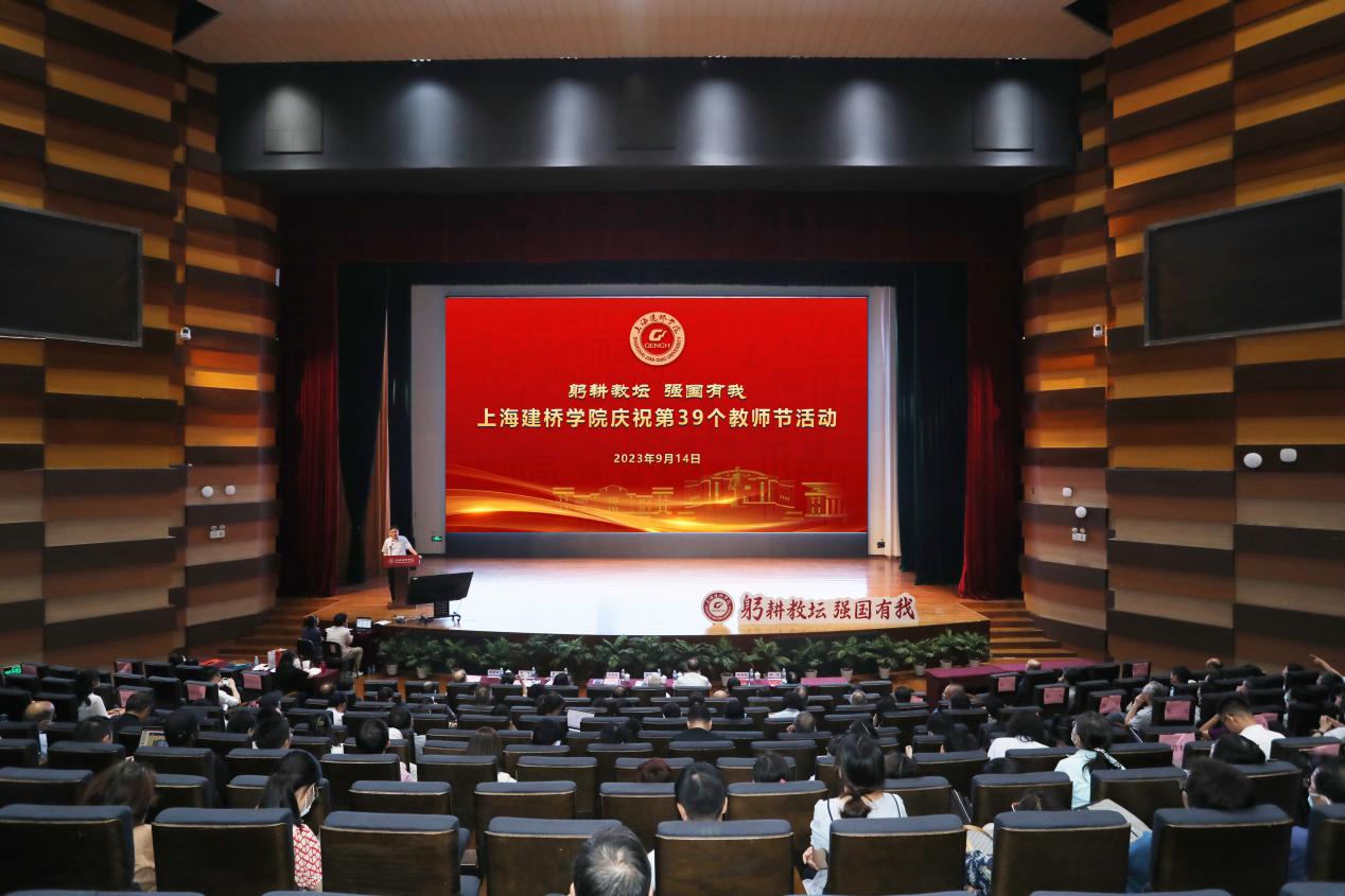 9月14日下午,上海建桥学院举行以“躬耕教坛,强国有我”为主题的庆祝第39个教师节活动。创校校长黄清云,校长朱瑞庭、校党委书记江彦桥等全体校领导出席,全体教职工参加大会。江彦桥书记主持大会。