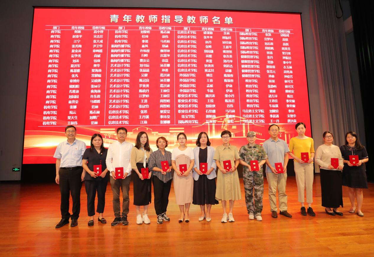 朱瑞庭校长现场为各学院新教师导师代表颁发聘书。教师是学校教育发展的第一资源,我校在师资队伍建设中一直有着“以老带新”的优良传统,为新教师配备导师,让导师在思想、业务和工作上帮助新教师进步成长。本批共有76对新老教师结对。