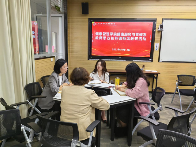 教师是学生行动的标杆。陶行知先生曾经说过:“学高为师,身正为范”。为进一步加强健康服务与管理系教师队伍师德师风建设,弘扬新风正气,树立教师形象,全面提升教师的素养,10月12日下午1点,健康管理学院健康服务与管理系组织开展了“加强师德师风建设”专题学习活动。活动由系主任姚美芳老师主持,牟喆、刘欣欣、高静老师参加。
