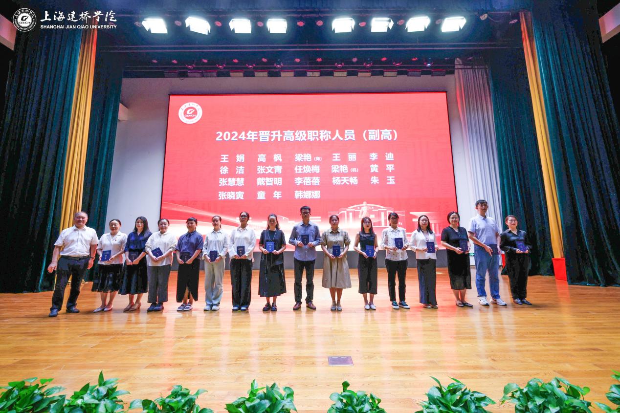 活动还对在教学、科研、课程建设等方面取得优异成绩的教师进行了现场表彰,包括第三届“匠心典范”、各类教学竞赛奖、课程建设奖、教改项目奖、纵向课题类、成果获奖类以及象征着学校最高荣誉之一的“卓越建桥奖”。大会还特别表彰了2024年度新晋高级职称的教师,他们的晋升不仅是个人职业生涯的里程碑,更是学校师资队伍整体实力增强的有力证明。