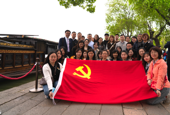 在党百年诞辰来临之际,4月23日,职业技术学院党委组织开展庆建党百年系列活动之一——前往位于浙江省嘉兴市的南湖中共一大会议旧址走访学习,拜谒见证和改变中国命运的红船。碧波荡漾的南湖上,这艘红船因缘际会,在革命风暴中与党结下了深深的的缘分,是一种偶然,更是一种象征。伟大的中国共产党掌舵了中国这艘大航船,从此中国革命由苦难走向辉煌。走访南湖红船:重温党史记忆,追寻红色足迹从建桥校园到嘉兴南湖的直线距离正好也是百余公里,当日一早,学院的教师们陆续赶赴集合点,集中坐车前往。经过近2小时的车程,一行到达嘉兴市南湖。经过了一晚上的蒙蒙的春雨,所有的亭台楼阁被洗刷一新,静静地矗立在烟雨朦雾里,路边的树、地上的草沐浴着如油的春雨,显得更加翠色欲流,清翠欲滴。“烟雨楼台革命萌生,此间曾著星星火;风云世界逢春蛰起,到处皆闻殷殷雷。”1963年董必武先生题写的楹联悬挂在小岛中的烟雨楼上。烟雨南湖,游人如织,红船旁,党旗招展。在烟波浩渺的南湖,职业技术学院一行瞻仰了南湖红船、参观了烟雨楼。在南湖边上,学院党员教工们,纷纷拿起鲜红的党旗,与这艘百年红船合影留念。红船的红,并不仅是船身的颜色,而是它所承载的红色血
