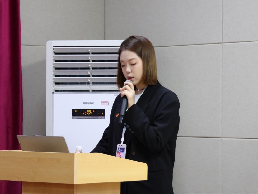 随后,由2023级新干事代表周宁宁发言。她表示作为闻传心协的新鲜血液,掌握技能、提升自我刻不容缓,关注朋辈心理健康更是重中之重。她提出,应尽快熟悉工作,明确职责,与其他成员团结互助,为闻传心协的心理健康工作助一臂之力。
