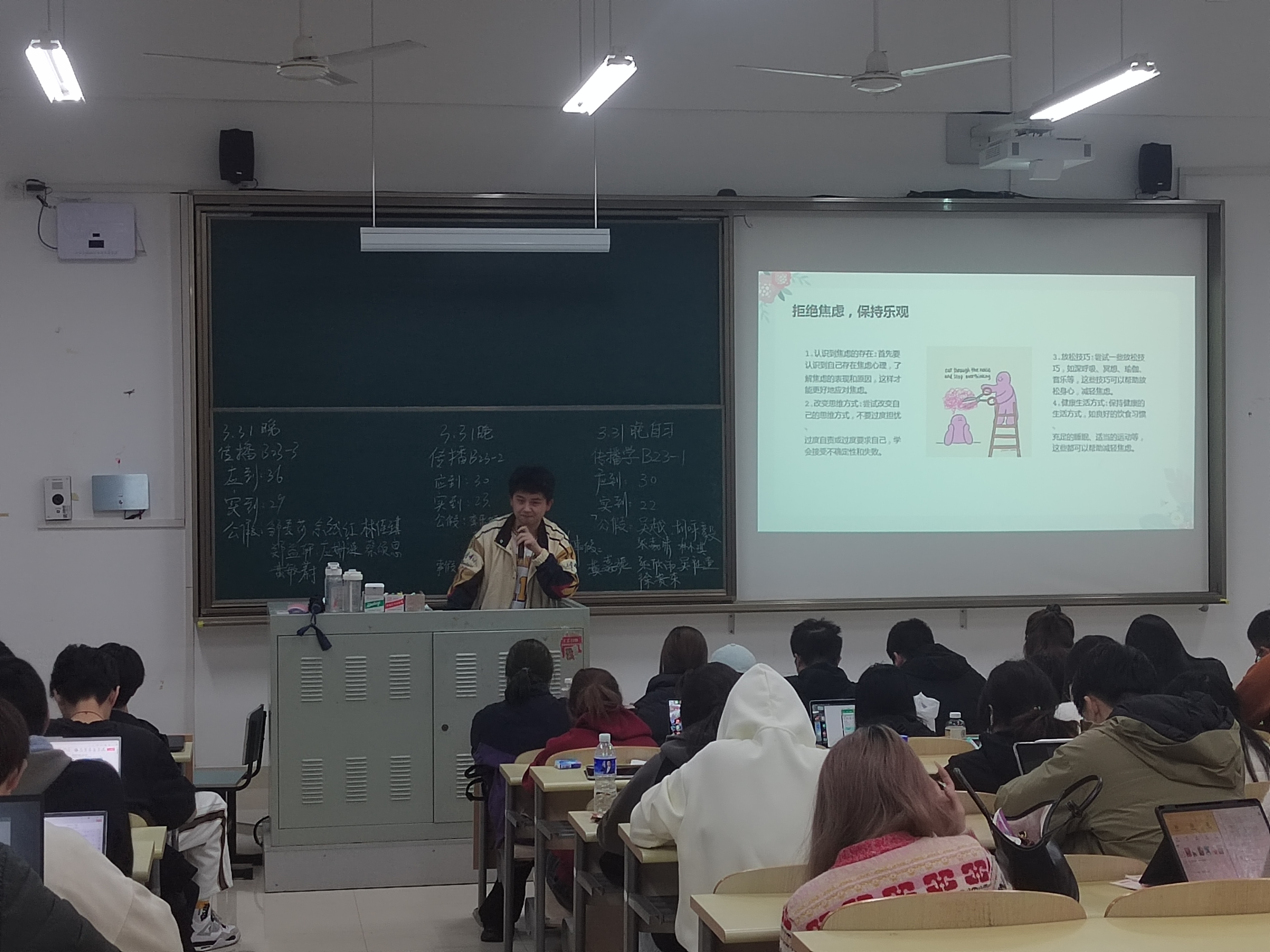 接着,主持人向同学们介绍了调节压力的方法,希望能够帮助同学们应对焦虑的情绪,并以艾利斯ABC理论来阐释部分焦虑产生的原因。
