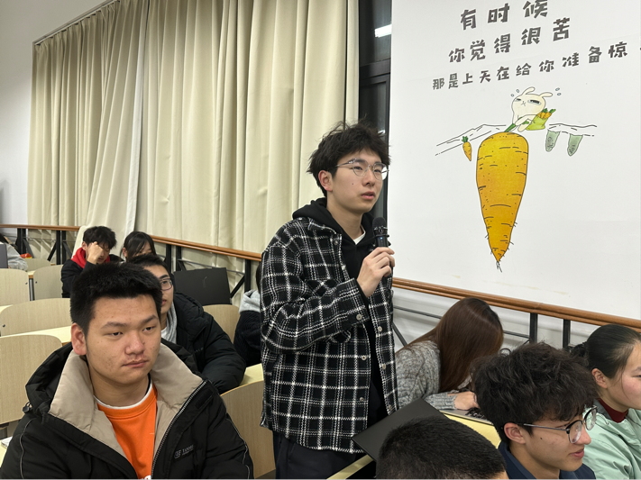 在案例分析环节中,罗晟宸带领大家探讨了如何在学习和社团活动之间找到平衡点,以及如何在面临选择时减少犹豫和焦虑带来的精神负担。对此同学们积极参与讨论,来自新媒体B23-1班秦艺珂同学和历亭余同学的分享为同学们提供了宝贵的经验和方法,帮助大家更好地处理类似情况。