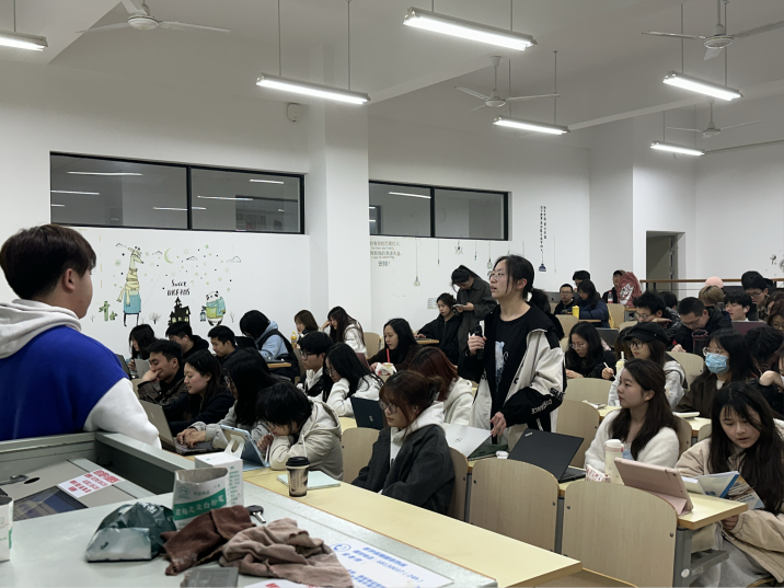 紧接着,罗晟宸发起小游戏“抽卡”活动。同时,来自新媒体B23-1班彭建乔同学和沈奕维同学对大学生心理相关案例发表了自己的观点,并分享了自己的经历和解决方法,进一步丰富了同学们对情绪管理的认识。