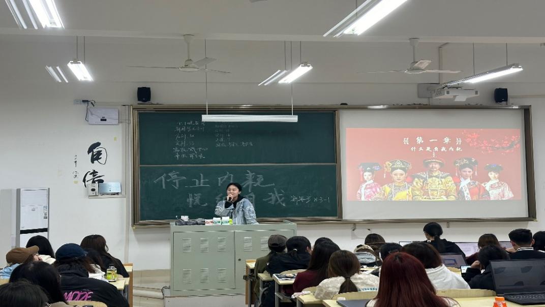 此次班会特别的是她没有讲述很多科学案例和数据,而是从大家所熟知的电视剧《甄嬛传》入手,分析《甄嬛传》中的角色心理人格,使大家生动形象地了解心理内耗及其相关内容。