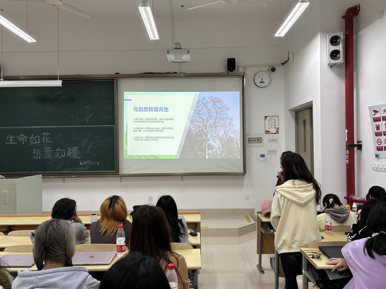 珍视生命代表着需要和身边的环境或人建立起关系,保护环境同样是热爱生活的一种方式。陈雨凝同学在宣讲过程中展露其想法,她认为保护环境相当于变相保护了自己,因为有了干净美好的环境,相当于为自己营造了更舒适的生活环境,能给自己带来更好的生活条件,我们需要努力做到的是人与自然和谐共生。