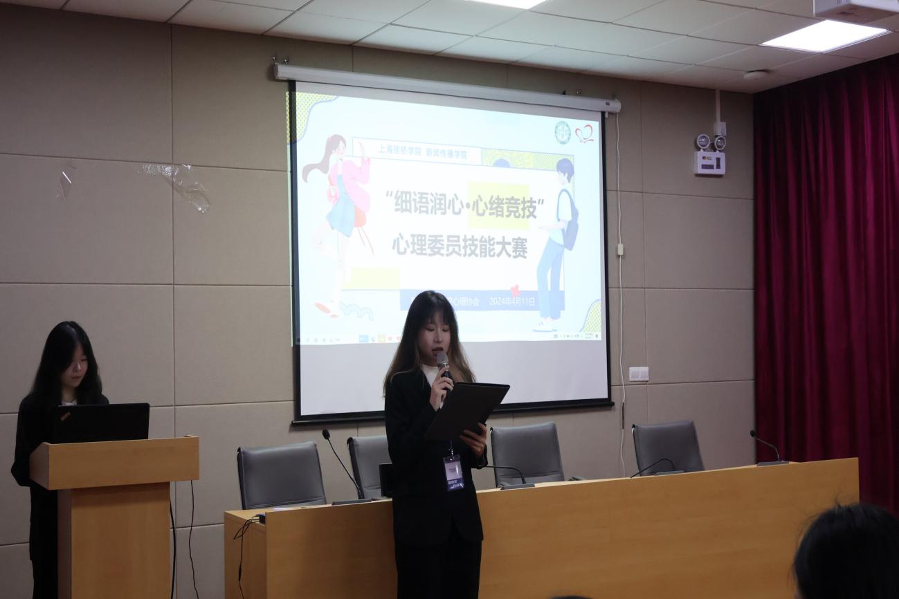 比赛开始前,主持人为我们介绍了本次比赛的赛制和规则。随后,由新闻传播学院心理协会指导老师马丹妮老师上台致辞后,本次心理委员技能大赛正式拉开序幕。
