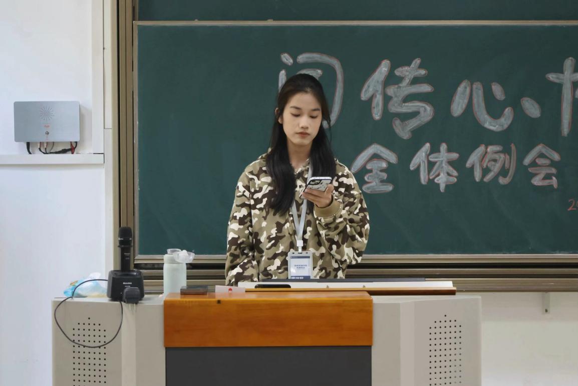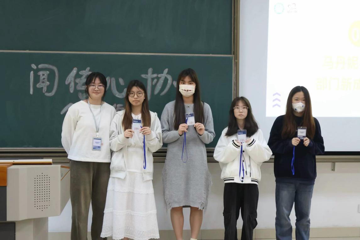 会议开始,马丹妮老师为新加入的心理协会成员授予了工作牌,希望新成员们都能够尽快地融入闻传心协大家庭。