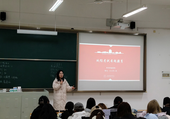 2025-2026学年第一学期期末考试在即,为切实加强考风考纪建设,营造公平公正的考试环境,近日,新闻传播学院组织2023级、2024级、2025级辅导员分别深入各班级,开展了内容扎实的考前诚信教育主题班会。班会伊始,各年级辅导员带领同学们对考场纪律进行了全方位的梳理与学习,重点围绕以下三个方面展开:一是明确考试违纪与作弊的界定。辅导员带领同学们逐条研读学校考试管理相关规定,对“携带违禁物品进场”、“旁窥”、“交头接耳”等违纪行为,以及“夹带纸条”、“传递答案”、“利用电子设备作弊”等严重作弊行为的认定标准进行了详细解读,帮助同学们清晰划定行为红线,强化规则意识。二是开展违纪作弊案例警示。辅导员结合近年来高校发生的典型考试违纪案例,以案说法、以案示警。通过剖析违纪学生面临的记过、留校察看、取消学位乃至开除学籍等严重后果,告诫同学们切勿心存侥幸,触碰纪律底线,要珍惜个人信誉和学术前途。三是强调清场及考场注意事项。针对考试流程,辅导员提出了明确要求:考前必须彻底清理考场桌面及周边杂物,只允许携带规定的文具入场;严禁携带手机、智能手表等具有存储或通讯功能的电子设备;考试期间需严格遵守监考指令