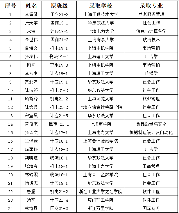 近期,随着2024年“退役士兵”专升本考试与招生工作的圆满落幕,职业技术学院的退伍士兵大学生们再次证明了他们的实力与毅力。共有24名优秀的退役大学生士兵成功被12所全日制本科院校预录取。这些职业技术学院的青年们,用自己的汗水和努力,在退役后再次实现了人生的华丽转身。2024年,学院共有24名退役大学生士兵通过专升本考试被录取,其中,学校入伍21人,公办全日制本科院校录取21人,公办本科录取率达到100%。职业技术学院党委一直以来高度重视大学生征兵入伍和退役安置服务工作,国防教育始终是我们工作的重中之重。学院始终坚守立德树人的初心,为他们的角色转变提供全方位的支持与帮助。让青春在迷彩的底色中更加绚烂,让铁血的荣光在校园里继续燃烧。职业技术学院学生工作部门通过多种方式和途径,深入宣传相关政策,确保上级政策得到细致落实,旨在进一步激发广大青年学生参军入伍、报效祖国的热情。这些退役士兵大学生的成功录取,不仅是对他们个人努力的肯定,也是对学院国防教育工作成果的最好诠释。让我们共同期待他们在未来的学习生活中,继续展现职院学子的风采,为祖国的繁荣富强贡献自己的力量!