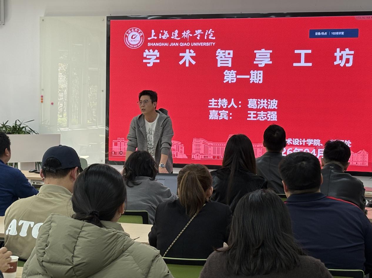 为全面提升学院科研水平与艺术学科项目申报能力,助力学校科研发展规划落地,4月2日,我院联合学校科研处成功举办首期“学术智享工坊”。本次活动特邀南京工业大学艺术设计学院王志强教授主讲,东方创意之星秘书长王俊、学校科研处副处长胡毓婷出席,活动由艺术设计学院院长葛洪波主持,艺术设计学院全体教师参与学习交流,现场氛围热烈浓厚。活动伊始,葛洪波院长对王志强教授一行表示热烈欢迎,并详细介绍了教授的学术成就与研究领域。王志强教授为三级教授、研究员、高级工艺美术师,同时担任加拿大多伦多大学访问学者、中国美术家协会会员等职务,长期深耕艺术设计与文化研究,主持完成国家社科基金、教育部人文社科基金等多项高级别项目,成果丰硕、经验丰富。主题分享环节,王志强教授聚焦国家艺术基金与省级艺术基金申报,结合民办高校科研特点展开深度解读。他指出,相较于竞争激烈的国家社科基金,国家艺术基金更偏向实践应用,十分适合艺术设计类教师申报。王志强教授系统梳理了国家艺术基金的设立背景、管理架构与2026年最新政策变化,重点分析了近三年申报数据与立项趋势,明确重大主题、中华优秀传统文化、乡村振兴、生态文明等为核心选题方向。他详细拆解