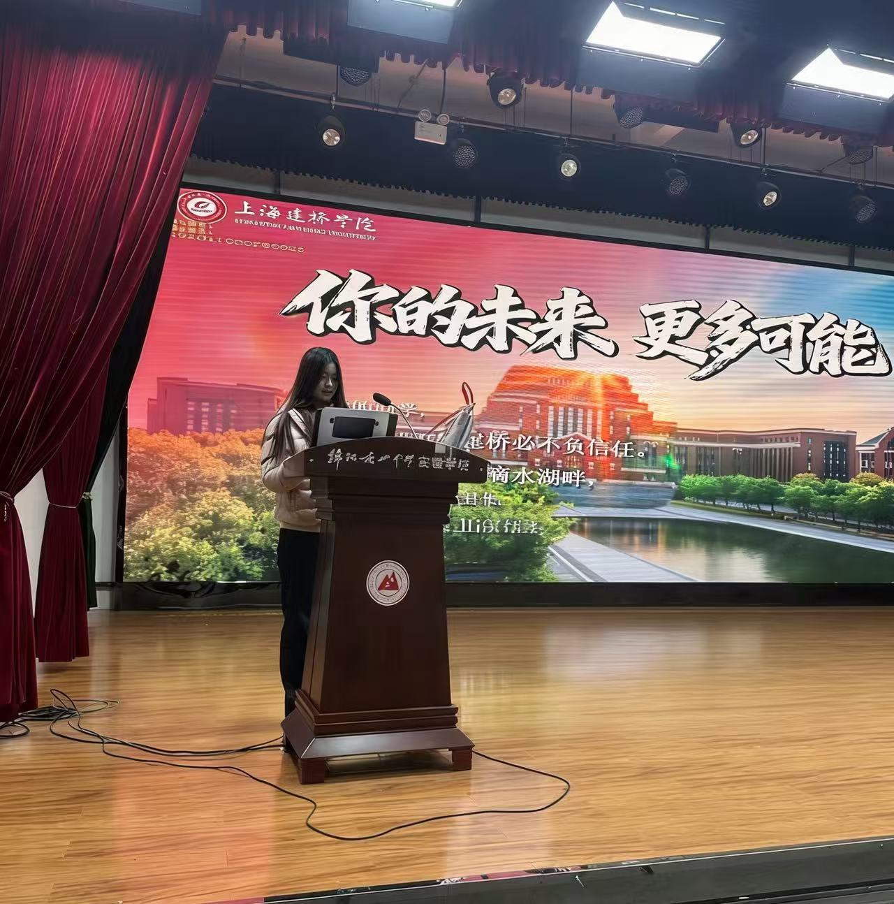 蜀地春归,韵满南山。这个寒假,上海建桥学院商学院“言妍汇声 桥韵生辉”宣讲队伍,承载着学院的殷切期许,携一腔赤诚与感恩,踏风奔赴绵阳南山实验学校。这支由会计学B25-3班梁品言、会计学B25-2班王妍组成的队伍,执队伍之帜,赴山海之约,走进这片浸润书香的沃土。庭前樱雪轻扬,漫过青砖黛瓦,墨香缠著风缕,漫染少年眉弯,这里的一草一木皆含情,一砖一瓦皆载韵,弦歌暗渡间,是文脉的赓续,是少年的滚烫。梁品言与王妍以青春为序,于这片书香沃土上,架起建桥与南山少年的心意之桥,让建桥校训的温润,揉进南山的清光里,让逐梦的期许,随春风漫卷,随樱香流淌,在岁月里沉淀出温柔的光芒。这场跨越千里的奔赴,是初心的回望,是薪火的传递,桥韵与书香相拥,热爱与期许同行,每一缕风,都在诉说着少年与理想的温柔邂逅。言妍同行,携桥韵赴南山之约此次返校宣讲,得益于对接人吴玖林老师的悉心协调与全力支持。从宣讲场地的筛选、设备调试,到高三学子的组织召集,吴老师全程保驾护航,结合绵阳南山实验学校的办学特色与学子需求,为梁品言、王妍提供了诸多实用建议,确保宣讲活动有序高效推进。重返南山校园,梁品言与王妍满眼皆是熟悉与眷恋,这里的书香