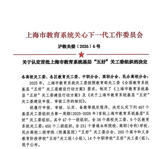 近日,上海市教育系统关心下一代工作委员会印发了《关于公布2025年上海市教育系统基层“五好”关工委组织名单的通知》(沪教关委〔2026〕6号)。在公布的名单中,上海建桥学院关工委珠宝学院分会光荣上榜,被认定为首批“上海市教育系统基层‘五好’关工委组织”。这一荣誉不仅是对我院关工委工作的充分肯定,更是对我院育人工作的莫大鼓舞。自成立以来,珠宝学院关工委始终坚持立德树人的根本任务,紧密围绕学校总体工作部署,在学校关工委的指导下,结合学院实际积极探索新时代关心下一代工作的新思路、新方法。我院关工委依托学院专业特色与资源优势,注重发挥“五老”(老干部、老战士、老专家、老教师、老模范)的传帮带作用,在加强青年学生思想政治教育、传承中华优秀传统文化、促进学生创新创业、助力青年成长成才等方面开展了卓有成效的工作。珠宝学院关工委也充分发挥“五老”骨干队伍的引领作用,立足珠宝学院的专业特色、依托珠宝行业发展优势,在珠宝学院学生培养、学生就业、学院产教融合、建桥珠宝艺术中心品牌建设等方面提供坚实支撑与决策指引。未来,珠宝学院关工委将以此次获评为新起点,珍惜荣誉,再接再厉。继续坚持党建引领,不断创新工作形式