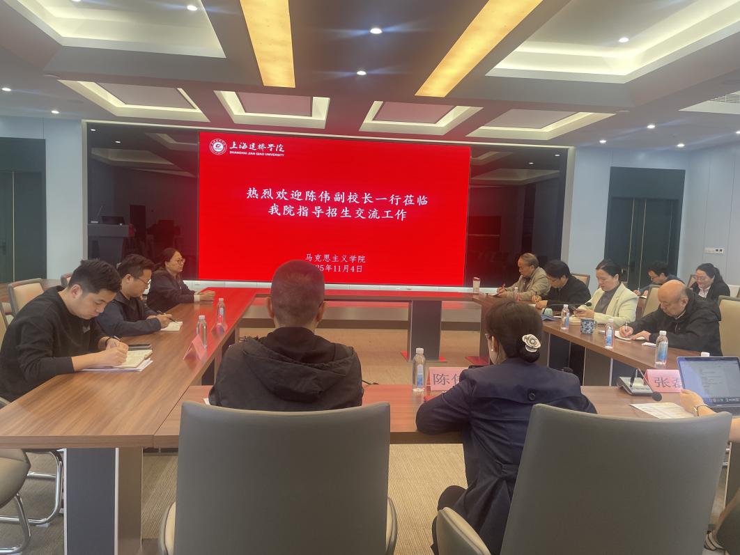 2025年11月4日上午,上海建桥学院副校长陈伟、校长助理张巍、招办主任张磊、招办主任助理钟子健、招办专员颜世浩一行莅临马克思主义学院,专题调研并指导学院2026年招生宣传工作。马克思主义学院与创新创业学院党政领导及招生工作骨干教师共同参会。调研会上,马克思主义学院院长宋院长系统汇报了学院针对云南省及崇明区招生宣传工作的筹备情况。她表示,学院已召开两次党政联席会,组建了专项招生宣传团队,围绕“一省一区”任务目标,完成片区划分、人员调配、行程规划等具体方案。学院重点筛选了云南省58所目标中学,依托教师属地资源及校友网络,积极拓展入校渠道,同时就调课协调、预算支持、学生志愿者配备等实际需求提出建议。陈伟副校长认真听取汇报后,对学院前期所做的工作表示肯定。他强调,招生工作是学校发展的生命线,面对生源压力,各单位必须凝聚共识、迎难而上。他详细介绍了学校层面为招生宣传提供的资源支持,包括宣传物料制作、全校师生资源库建设、学生志愿者遴选与培训、专项经费保障等多项举措。陈校长指出,各学院要结合自身特点,灵活制定宣传策略,注重过程管理与实效评估,通过走进中学、建立生源基地、开展精准宣讲等方式,切实提升