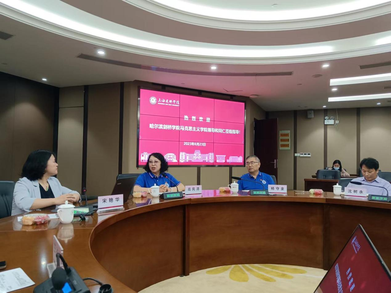 6月23日,哈尔滨剑桥学院马克思主义学院全体教师在副院长高凤清教授带领下来我校马院进行专题调研,我校马院院长宋艳华、副院长沈树永热情接待远方贵客。宋艳华主持专题调研会,课程组负责人参加会议。哈尔滨剑桥学院马克思主义学院全体教师首先参观了我校雷锋馆和国政馆,宋艳华做了热情讲解。高凤清对于我校红色场馆和弘扬雷锋精神特色校园文化给予高度肯定,认为红色场馆是思政课教学的重要阵地,可以发挥重要教育作用。调研座谈会上,宋艳华从五个方面就马院成立以来所取得的成绩作了详细介绍:加强组织领导,推动顶层设计;加强改革力度,推动课程建设;加强内外联动,推动合力育人;加强培养强度,推动队伍建设;加强雷锋研究,推动学科建设。在交流环节,双方课程负责人分别就思政课教学方法、混合式教学模式、实践教学、形势与政策课程建设等具体问题进行了深入探讨,尤其是在如何提升实践教学实效性方面谈了各自的做法,达成了一些共识。高凤清对于我院的热情接待和宋艳华院长的经验介绍表示衷心感谢,认为我校思想政治教育的经验与做法值得学习借鉴。双方领导和老师都纷纷表示要加强合作,共谋教改之策和发展之路。(供稿:马克思主义学院)