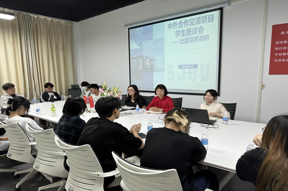 6月15日,国际教育学院中外合作交流项目学生座谈会在国际教育学院209会议室召开。学院党总支书记周英芬、副书记高祺出席本次座谈会,参与本次座谈会的有中美项目、中英项目、中日项目共15位学生代表。本次座谈会由辅导员刘志霞老师主持。会议伊始,刘志霞老师介绍了本次座谈会以及国际教育学院学生出国意愿调研项目的主要目的。本次座谈会主要是为了了解同学们对于出国项目的疑惑,参与出国项目的意愿,希望学院能够针对中外合作交流项目做出哪些改进措施。座谈会过程中,中美项目的赵宇同学代表班级想要出国的同学们咨询了同学们比较关心的就业问题,周英芬书记给予了细致解答。中英项目的王昊阳同学谈到,部分同学们不愿意参与项目的原因可能有学业压力、担心国外学习生活的适应性问题、感兴趣的专业申请困难等问题,这为学院开展进一步深入调研提供了有力参考。中日项目的同学们表示关心参与项目回国后的就业问题,同时希望学院能够组织提供短期交流活动,便于同学们深入对项目的了解。高祺副书记向同学们介绍了中日项目同学们就业的情况,勉励同学们要增强信心。最后,刘志霞老师就座谈会内容进行了总结,周英芬书记就学院学生出国意愿调研项目进行了简单的介绍,