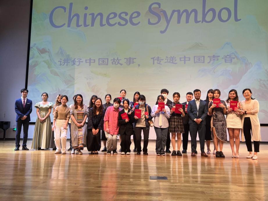 用外语讲好中国故事,传递中国声音。2023年6月1日晚,第三届“建桥杯”大学生英语演讲比赛决赛在学校大礼堂拉开帷幕,学院党委书记杜鹃、校团委副书记李月艳、学院院长助理、大英部副主任孔辉,大英部教师代表以及全校12个学院的近400名学生代表出席了本次活动。本届英语演讲比赛以“Chinese Symbol”(中国象征)为主题。经过初赛、复赛的层层选拔,共有7个学院的15名同学脱颖而出进入了决赛。活动伊始,外国语学院党委书记杜鹃老师开幕致辞,鼓励同学们努力学好外语,勇担向世界传播优秀中华传统文化的重任,在世界面前展现出我们中国可亲、可敬、可爱的良好形象。随后,15位选手用自己的理解、流畅的英语讲述了中国龙、旗袍、熊猫、丝绸等中国象征故事,不仅展现了当代大学生勇于挑战、意气风发的精神面貌,更展现了他们爱党爱国的精神面貌和文化自信。最终,本次演讲比赛评审出特等奖一名,一等奖两名,二等奖六名,三等奖六名。职业技术学院王倩同学获决赛特等奖。附:第三届“建桥杯”大学生英语演讲比赛获奖名单奖项姓名学号专业班级学院特等奖王倩2100306商务英语21-2职业技术学院一等奖米尔斯叶·米尔夏提2100320商