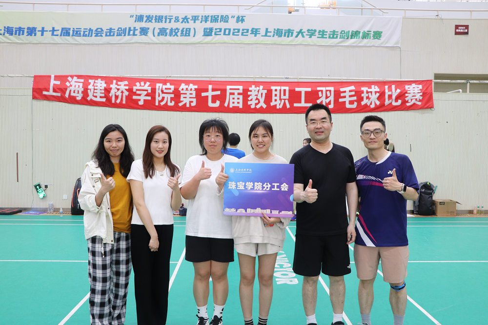 为创建良好的校园文化,促进教职工体育锻炼、提高教职工健康水平,由上海建桥学院校工会主办,校羽毛球协会承办的第七届教职工羽毛球比赛于2023年5月6日下午在建桥体育馆二楼举行。本次共有11支队伍成功报名参赛,比赛分为男子单打、女子单打和男女混合双打等三个团体比赛项目。珠宝学院党总支和分工会积极组织,由刘衔宇、王新烈、周鑫和孙依婷4位老师组成参赛队。在本次比赛中,宝院选手充分展现出顽强的斗志和雄厚的实力,技术娴熟的刘衔宇院长和王新烈老师为学院屡屡拿下关键比分,首次参赛的周鑫和孙依婷老师全程发挥稳定。经过小组赛的突出重围和淘汰赛的激烈角逐,珠宝学院代表队最终在决赛中以2:1战胜对手勇夺桂冠。为学习贯彻落实党的二十大精神,更好的活跃文化氛围,彰显教师风采,珠宝学院分工会在党总支的指导下,将继续组织“学习二十大 运动向未来”等乒羽系列活动和赛事。(供稿:珠宝学院)