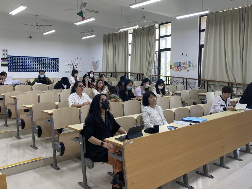 为深入学习贯彻习近平新时代中国特色社会主义思想主题教育,围绕立德树人的根本任务,深入推进教育教学协同育人,全面提升人才培养质量,大英教师党支部结合大英部当前的工作重点和难点,开展大学英语四级“小先生”培育工作。培育工作的首场活动 《角色转变:从学生到先生》的专题讲座,于 5月25日下午一点,在北区学生社区书院进行。本次活动由大学英语系教师党员刘忠杰老师担任主讲人,来自各学院的五十余名英语助教参加了此次培训,活动由大学英语教师党支部书记陈银春教授主持。讲座伊始,陈银春教授引用自身学习经历,指出大学时期学好英语的重要性,同时向助教传授了“从学生到先生”的角色转变方法。她强调英语作为一门语言,普及程度极高,是便捷的语言货币;作为一种学习习惯,学习英语的过程能让大家养成积累学习的习惯;学习英语更是学习一种思维模式,是不论任何时期都可以利用的宝贵财富。随后,刘忠杰老师从自己的英语学习和教学心得展开,向同学们讲述了如何从自己学好转变为教会别人学好,做好一名“小先生”。“达者为先,师者之意”,刘老师借用“学习金字塔理论”阐述了做一名助教老师,教授他人提高英语能力的教学方法。刘老师还从英语学习目标,教