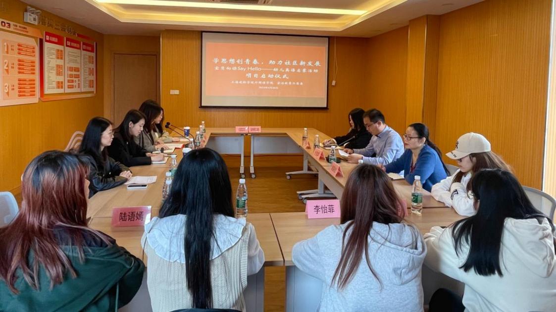 为深入学习贯彻习近平新时代中国特色社会主义思想主题教育,牢牢把握“学思想、强党性、重实践、建新功”的总要求。2023年4月26日上午,外国语学院与宜浩欧景二居委联合举办了“学思想创青春,助力社区新发展”院社结对启动仪式。宜浩欧景二居委党支部书记付安华、副主任赵彩红、居委委员严蓓,外国语学院党委书记杜鹃、实践活动指导老师王嘉怡、及学院学生志愿者代表参与本次活动,会议由分团委书记孟娣主持。会议伊始,宜浩欧景二居委付安华书记对外国语学院领导、师生的到来表示热烈的欢迎,并表示非常感谢外国语学院通过开展社区幼儿英语启蒙活动,支持社区建设发展工作。他表示希望以此次合作为契机,充分发挥双方优势,规律开展共建活动,创新探索联动模式,促进院社合作的持续深入发展。杜鹃书记谈到坚持教育和实践相结合是这次主题教育的一个突出特征和具体要求,理论的意义在于指导实践。杜书记教育引导英语教育专业的学生要明白“纸上得来终觉浅,绝知此事要躬行”的道理,要能从学的课堂上走向教的课堂,将书本所学,转化成实际的工作技能。感谢宜浩欧景二居委为我们学生提供了丰富的实践平台,希望同学们珍惜机遇,努力把学习成果转化为坚定理想、锤炼党性
