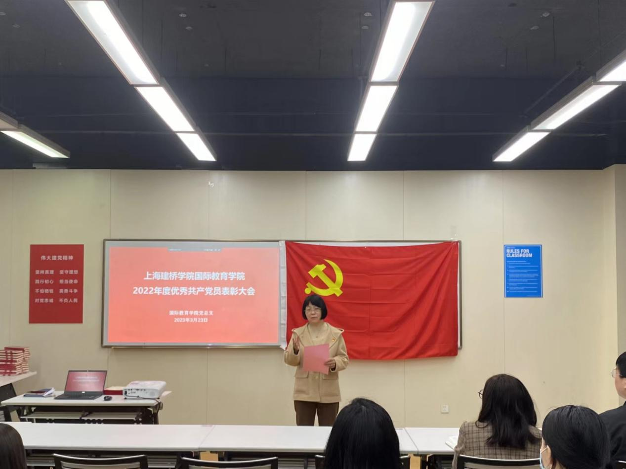 为树立典范,密切党组织和党员之间的联系,积极促进党员间相互交流、相互学习、共同进步的良好局面,充分发挥党员在学习、思想、业务、生活中的模范作用,外国语学院3月23日下午在129室召开“守正创新,勇毅前行,用外语讲好中国故事”2022年度党建工作总结表彰会。党委书记杜鹃、副书记伊莉、全国标杆支部机电学院教师党支部书记张迪,以及外国语学院全体教师党员出席了会议。党委书记杜鹃从党委工作、支部建设、党员示范这三方面对学院过去一年的党建工作进行了全面总结。通过政治建设、制度建设、组织建设、思想建设向全体党员展示了党建工作成果。在讲到支部建设工作时,杜书记带领全体党员学习了新时代高校党建“双创”工作重点任务指南(基层党支部)的七个有力,并提出创建“一支部一特色”的支部建设要求,促进各支部塑造有影响、上水平的党建品牌。在党员示范方面,杜书记分析了近三年党员的获奖、主持项目课题、承担第二课堂以及社会实践工作等情况,并结合二十大报告中关于教育的论述,要求全体党员落实立德树人的根本任务,提升党员的显现度。同时,杜书记强调,新的一年是全面贯彻落实党的二十大精神的开局之年,是学院党建工作推动教育教学工作高质量