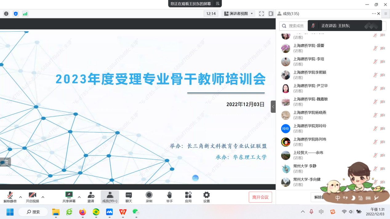 2022年12月3日(周六)下午13:30-16:00,长三角新文科教育认证联盟在线上举办“2023年度认证申请受理专业骨干教师培训班”。外国语学院日语系在教务处的指导和协助下,组织各部门的日语专业教师成立“2023年度日语专业认证工作组”。工作组的10位老师利用休息时间,全程参加了本次培训会议。本次培训由华东理工大学承办,首先由东华大学教务处处长姚卫新教授就“新文科教育专业认证标准”进行了详细的解读。接下来,由东华大学纺织学院副院长郭建生教授详细介绍了专家现场考查的方法和各项工作的注意事项。最后由东华大学管理学院王扶东副教授围绕认证学相关工作及预检查申报工作进行了解析。自2016年加入《华盛顿协议》以来,我国在工程教育专业认证领域取得了巨大进展,对工程教育领域人才培养质量的提高起到了极大的推动作用。与此同时,人文社科类专业在我国高等教育领域占据了半壁江山,这些专业及学生均包含在教育部提出的“新文科”教育领域内。从新时代培养高素质人才的角度出发,借鉴工程教育专业认证的理念和方法,在新文科教育领域开展专业认证已经成为我国高等教育的当务之急。外国语学院日语系将以认证工作为契机,通过认真学习