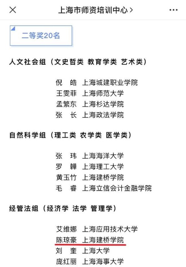 商学院陈琼豪老师在第三届“上海高校青年教师培养资助计划”课程思政教学案例展演中获佳绩