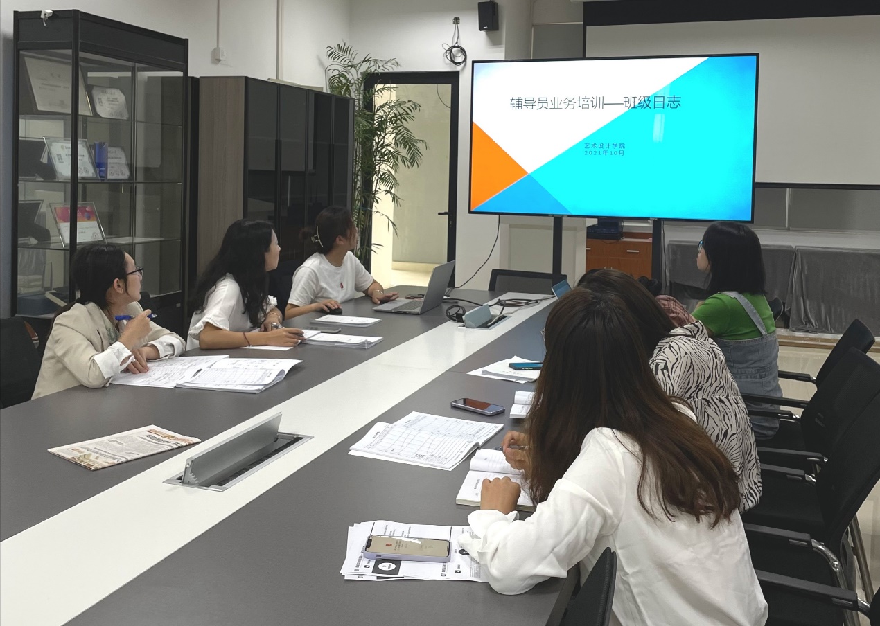 10月11日上午,艺术设计学院在实训楼223会议室召开了2021年新入职辅导员业务培训会。院党总支副书记王丽佳及全体2021年新入职辅导员参加了会议。会议由副书记王丽佳主持。 会上,王丽佳副书记具体讲解了班级日志的主要内容和重要作用。她强调班级日志是学院教学工作、学生工作、辅导员工作的真实写照,以及次年学生评奖评优的重要参照文件。班级日志是班级班风的体现,班干工作情况的体现,也是辅导员管理能力的体现。她指出了班级日志填写中存在的问题,就如何正确填写进行了示范和说明。同时提出了班级管理的具体工作方法,强调要做好班级管理工作,重点在学生思想工作和学风建设。此次学习培训,使与会辅导员明确了班级日志在辅导员工作中的重要性,有利于提高辅导员的工作业务能力和水平,为后续顺利开展班级管理工作奠定了坚实的基础。