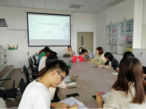 5月18日上午,信息技术学院学工办在学院213会议开展本学期第四期辅导员工作专题例会,学院党委书记王晨岑参加本次会议,党委副书记徐娜主持,全体辅导员参会。本次会议以“特殊学生问题分析及处理”为主题,由大一年级组长苗婉茹老师进行分享交流。苗婉茹老师依据以往带班经历将特殊学生进行分类,对每一类学生情况进行归因分析并作出应对处理措施,同时结合案例分享的形式,让参会老师能够快速理解并掌握应对方法。随后,李苗、张璐两位老师就近期处理的特殊学生案例进行深度分享交流。两位老师聚焦本班特殊学生案例,讲述了面对危机事件的处理流程和应对措施,集结多方力量,采取有效措施,对上汇报对下执行,将突发状况扼杀在萌芽状态。会议最后,王晨岑书记总结讲话。王书记指出辅导员专题研讨例会是一个非常好的学生工作交流方式,尤其是辅导员工作面临很多突发事件,需要多总结,多交流,促进辅导员专业能力提升。王书记最后强调学生安全问题是学生工作底线,尤其是当前防疫背景下,辅导员要紧抓日常管理,做好盯防一体,开展安全教育不松懈。