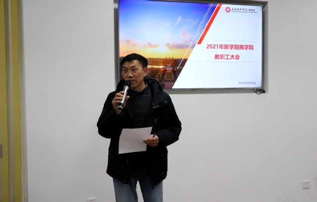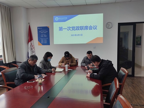 3月4日下午,职业技术学院在职院楼247会议室召开新学期首次全院教职工大会,传达教务、工会有关会议文件精神,部署安排开学重点工作。学院领导王加宁、汤以范、潘明芸出席,全体教职工参加,会议由谷伟院长主持。会上,谷伟院长代表学院向调岗的几位老师寄语,希望这些老师在新的学院工作顺利,常回“娘家”看看。汤以范副院长通报开学以来教学秩序情况,并结合新学期首次教学例会会议精神,对学院教学材料上网、听课巡视安排、竞赛项目申报、教师进修培训等工作进行了具体安排。潘明芸副书记就学生工作进行了交流,主要就部分带班调整、特殊群体学生关爱、实习就业指导、专升本帮扶等方面工作进行了安排,希望发挥多方合力,新学期共同推进学生工作。陈少东主任通报分工会主席例会有关三八妇女节会议活动、教职工保险参保、教代会及提案、新学期校工会工作概要等事项,解答教职工关心的有关问题。孙梅主任就实验场地管理王加宁书记讲话指出,学院全体教职工要秉承“时刻把学生冷暖放在心上”的理念,把学生的利益当做自己的利益看待,用心关爱学生,以高度的责任感,马不停蹄,推进2021年学生实习与就业工作,同时做好分类管理,精准帮扶特殊群体学生。加强毕业季组