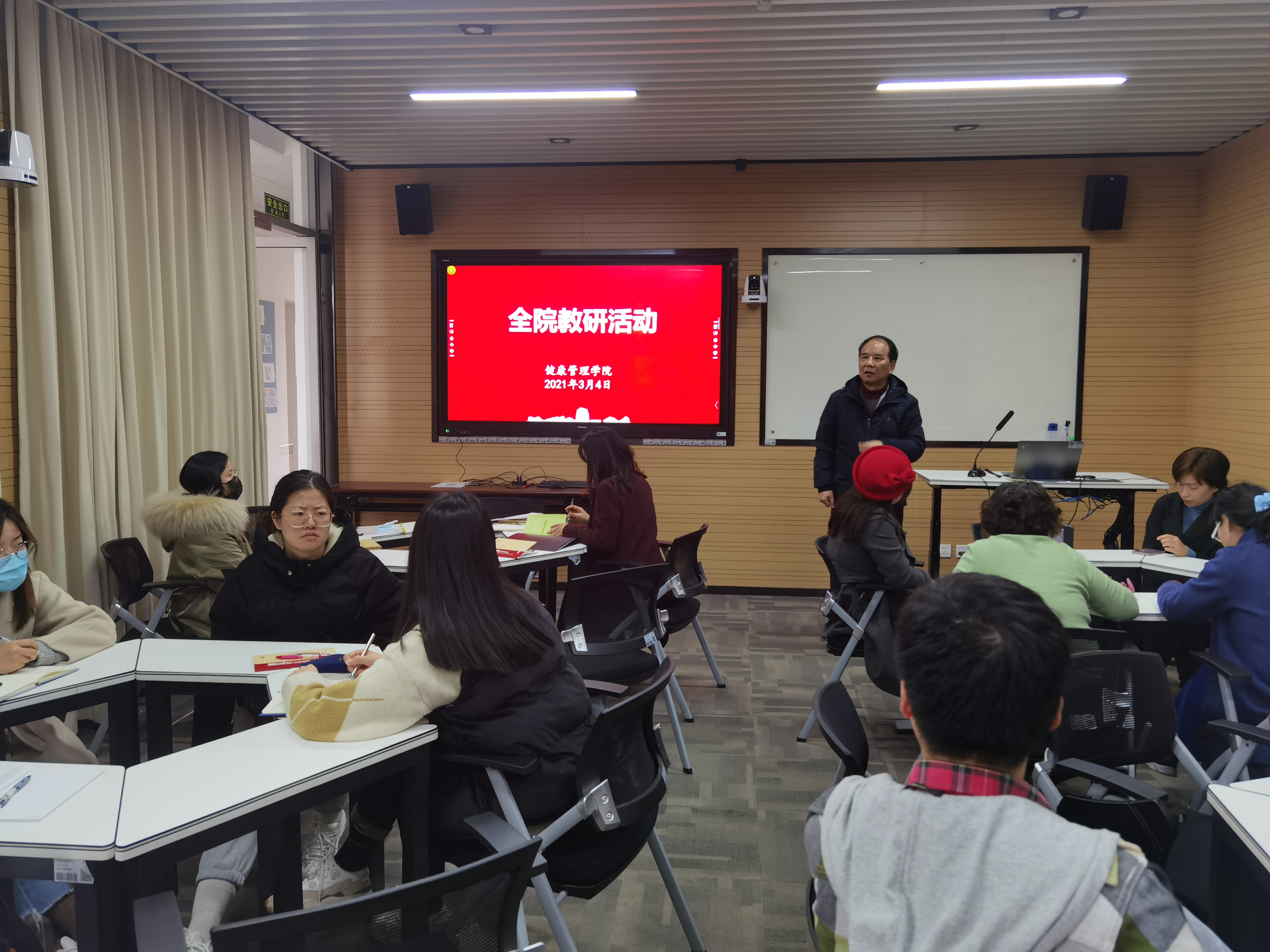 3月4日下午13:00,健康管理学院在高职219会议室召开新学期全院教研活动,会议由副院长詹文娴主持,学院院长、党总支书记焦庆堂、院办主任高海燕、各系主任及全体专职教师出席会议。詹文娴副院长首先就我院第一周就教师出勤履行教学工作情况、教学环境情况、学生出席情况等做了说明。第一周我院教师无任何迟到缺课情况,总体教学秩序情况良好。随后,就开学期初的各项教学工作与教学计划的展开做出具体指导,包括检查核对归档资料、补考阅卷的注意事项、教学运行中各环节的细节完善等。随后焦庆堂院长对本学期学院工作作了规划和展望,明确了健康管理学院在本学期工作中的重点,强调了新专业筹备与进一步的发展建设工作、拓展校企合作与师资队伍建设,进一步明确了学院后续发展的方向与重心。