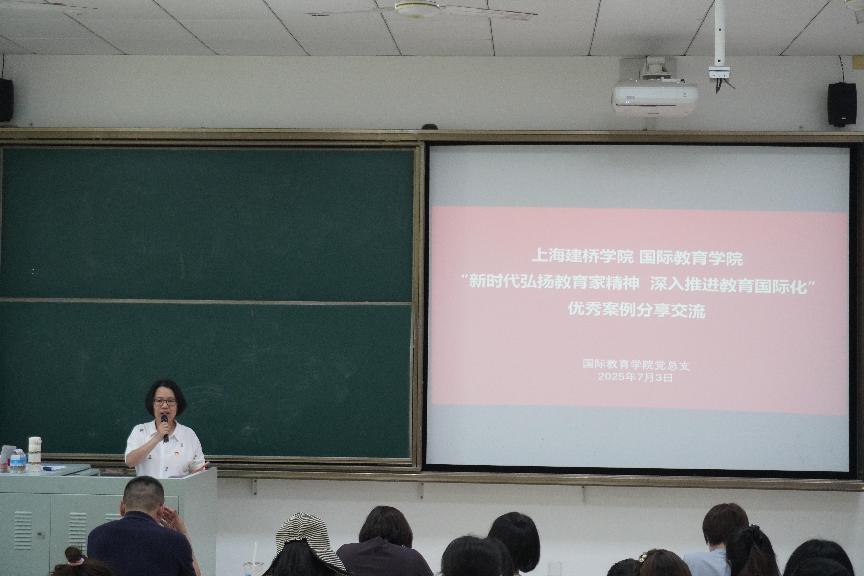 为进一步弘扬先进、树立典型,激励教师们潜心教书育人,7月3日下午,国际教育学院组织开展了“弘扬教育家精神”优秀案例表彰及分享交流活动,学院全体全体教职工参加了本次活动,活动由学院党总支组织委员兼宣传委员岳会锦主持。图1:岳会锦老师总结弘扬教育家精神案例征集活动开展情况 首先,岳会锦老师总结了本次弘扬教育家精神案例征集活动开展情况,并宣读了学院党总支表彰决定。岳老师提到,为全面贯彻落实习近平总书记关于弘扬教育家精神的重要指示精神,引导学院教职工以教育家精神为引领,牢记为党育人、为国育才的初心使命,牢固树立“躬耕教坛、强国有我”的志向和抱负,深耕中外合作办学和教育国际化,及时总结提炼教育教学和人才培养中的优秀做法,2024年12月,学院党总支下发了《中共上海建桥学院国际教育学院总支部委员会关于征集“新时代弘扬教育家精神 深入推进教育国际化”典型工作案例的通知》,向全体教职工征集典型案例。截止2025年3月,学院共征集案例9篇汇编成册。经学院党总支综合评议,决定将9篇工作案例评为优秀案例,并进行表彰和奖励,获奖的老师分别是:赵婷、任维、张凯、贺亚茹、胡伟、郑越、周晓帆、杨静、岳会锦。图2: