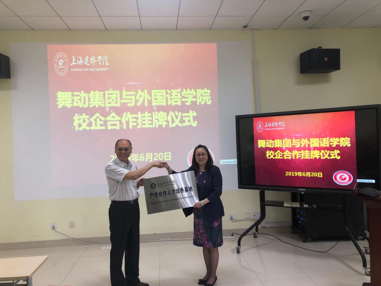 2019年6月20日,外国语学院与舞动美语教育集团校企合作挂牌仪式于外国语学院129教室举行。舞动美语教育集团联合创始人陈青丰先生、教学总监陈学莎女士、外国语学院党总支书记江萍老师、党总支副书记孙俊芳老师、外国语学院英语系副主任刘晓霓老师和部分外国语学院学生参加了挂牌仪式。挂牌仪式由外国语学院谢徐萍教授主持。在挂牌仪式上,谢徐萍老师回顾了我院与舞动集团合作历程。江萍书记作为外国语学院领导对舞动集团给予我院的帮助表达了感谢。同时,孙俊芳副书记鼓励在场同学参与到本次校企合作中来,让大家在自己的同学中积极宣传,扩大本次校企合作的影响力。舞动美语教育集团联合创始人陈青丰先生也做了发言,对双方的合作充满了信心,期望未来双方可以在学生的就业创业方面加强合作。舞动美语教育集团教学总监陈学莎女士介绍了舞动美语教育集团的情况,希望未来双方的合作取得成功。最后,参加挂牌仪式的各位领导、老师和学生一起合影留念。撰稿:李晓峰