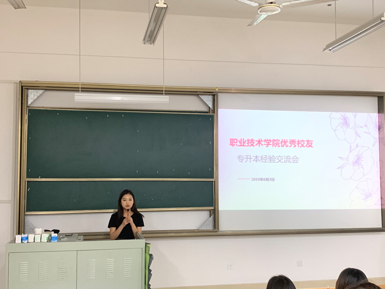 2019年6月3日晚,15级国际商务专业毕业生梁月圆以及16级旅游管理专业张姿婷在四教306、308为18级商贸系学生带来一场热情洋溢的专升本经验交流会。梁月圆同学于2018年6月以专业排名第二(高数98,金融88)的成绩升至上海立信会计金融学院金融学专业。张姿婷同学于2019年6月升至上海师范大学酒店管理专业。梁月圆和张姿婷同学都结合自身经历,详细介绍了自己准备专升本考试的经验,建议同学们根据自身情况,及早确立目标,有针对性地提升自己各方面的能力,并阐明了学好专业知识的重要意义。最后,两位学姐和学弟学妹们进行了互动,为大家答疑解惑。