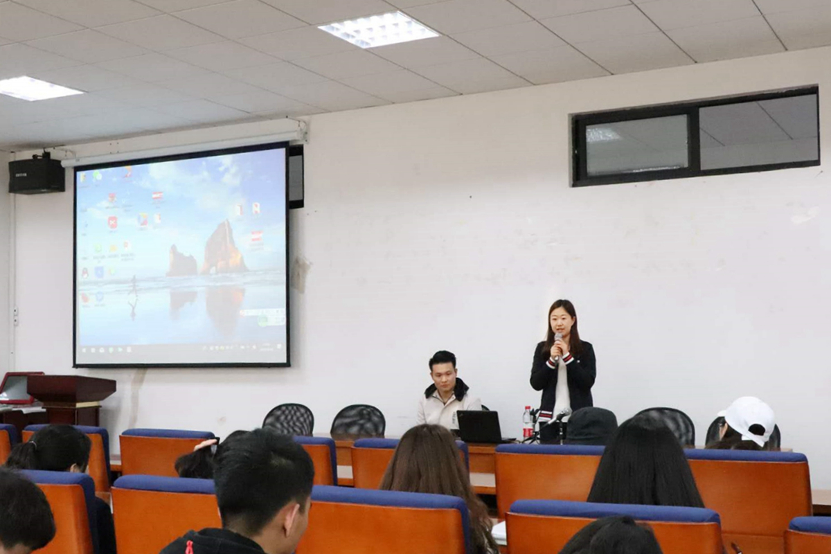 为提升学习氛围,增强同学们的学习技能,4月16日晚,高职学院在四教404举办了商务英语专业考证与学习规划讲座。商英系副系主任臧玉洁做了报告。辅导员姜彦超以及18级商英全体同学出席了讲座。本次讲座,臧玉洁以PPT的形式图文并茂的介绍了商务英语专业的培养目标、课程设置以及今后的就业方向。她用生动的事例,引导学生思考如何合理规划大学三年,并强调了考证的重要性。她详细的罗列了大学三年商务英语专业可考的有价值的证书,鼓励同学们树立目标,积极报考,为考取证书打好基础。此外,臧主任介绍了全国高职高专口语竞赛、高职高专写作比赛等竞赛,以优秀校友的例子告诉大家要敢于尝试,敢于改变自己,敢于为梦想而积极行动起来。最后,介绍了我校开展的加拿大UBC暑期翻译项目以及美国的迪士尼项目等海外交流项目,号召大家勇于走出去,开拓国际视野。在互动环节,同学们主动向老师提问,现场气氛热烈。