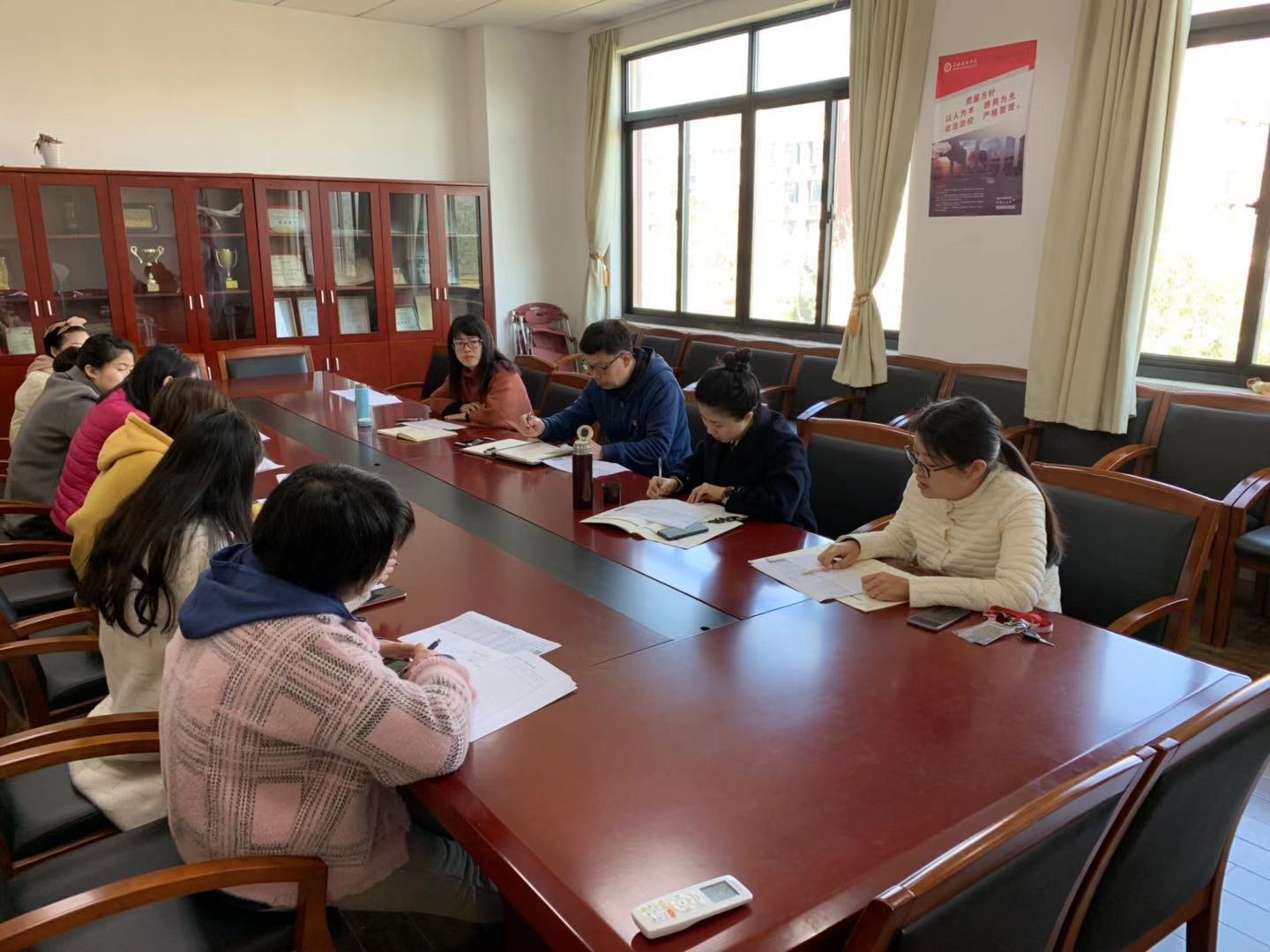 3月19日上午,学院于245会议室召开辅导员工作例会暨第二次社区工作推进会议。党总支书记王加宁、总支副书记潘明芸及全体辅导员参加会议。会议由潘明芸副书记主持,首先通报了本学年第2-3周社区卫生检查结果及晚归情况,对学院所辖社区管理中存在的不足进行梳理。各辅导员也对重点关注寝室问题进行了进一步地探讨和分析。针对各年级“问题寝室”存在的特点以及年级之间的不平衡性,赵君、杨洁、孙滔韬等三位老师分别就自身社区管理经验进行了分享。总支书记王加宁做总结发言,他指出:社区工作要与思想教育紧密结合,辅导员要多下寝室,走近学生。同时要不断加强自身学习,多参加课题的申报工作以及培训提升。鼓励辅导员多参与校内外培训,积极考取高校教师资格证和上海市中级心理咨询师等。本次会议旨在凝聚共识,巩固和发展前期社区工作建设成果。今后,会继续加强社区工作,下决心将寝室建设为一个真正的“成材之家”,同心协力把学院建设得更好。